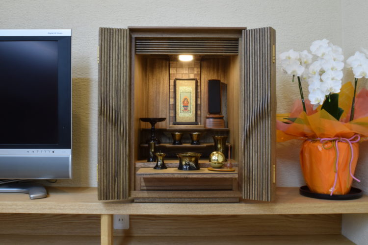 背面の市松模様がアクセントとしてご本尊を引き立てます