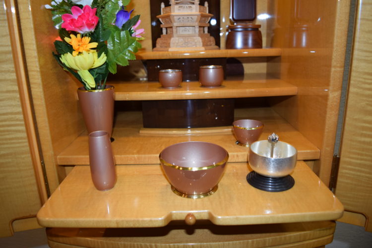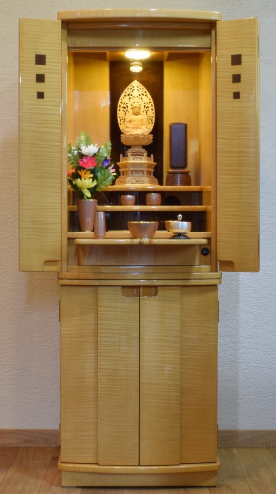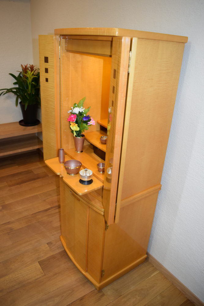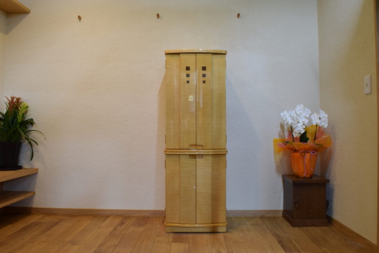 下の台には収納棚が付いています、棚板を外せば骨壷の仮置きにも使用できます